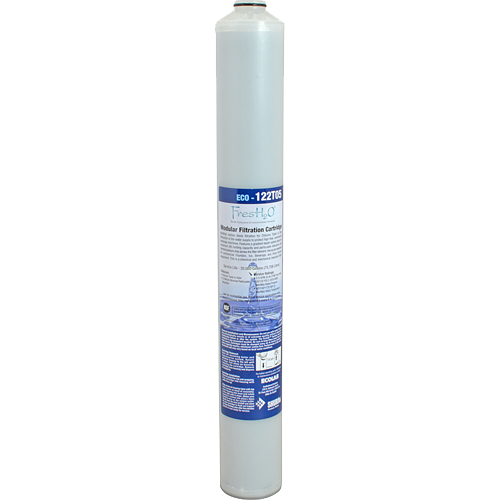 Water Filter Cartridge, 21-1/2" x 3", 20,000 gallon capacity, 2.5gpm, 20-125psi/1.4-8.6 BAR, .5 micron filtration, 40° to 100° F temperature range, O-ring, chlorine taste & odor, white, plastic cartridge housing, (ECOLAB-122T05)