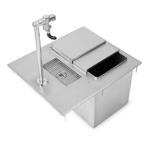 Ice & Water Unit, drop-in, 18"W x 21"D x 13"H overall size, 13"W x 9" front-to-back x 11" deep insulated ice bin with removable sliding lid, removable water sink grate, with 14"W x 14-3/4"H removable splash guard, 16/300 stainless steel top, 18/300 stainless steel base, includes PBF-SGL-LF glass filler faucet, NSF (weights are subject to additional packaging)