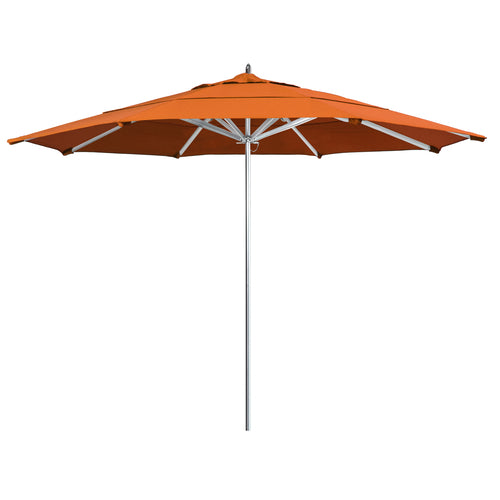 Rodeo Series Patio Umbrella, 11 ft., octagonal, double wind vent, 1-1/2" dia. aluminum silver anodized pole, single piece with 3mm wall thickness, stainless steel hardware, pulley lift with pin stop, oversized reinforced aluminum rib joints with stainless steel spring loaded tips, polished aluminum hub, housing and finial cap, Grade 2A Sunbrella™ Fabric, tuscan, Made in USA