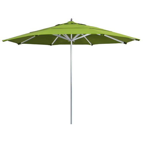 Rodeo Series Patio Umbrella, 11 ft., octagonal, double wind vent, 1-1/2" dia. aluminum silver anodized pole, single piece with 3mm wall thickness, stainless steel hardware, pulley lift with pin stop, oversized reinforced aluminum rib joints with stainless steel spring loaded tips, polished aluminum hub, housing and finial cap, Grade 2A Sunbrella™ Fabric, macaw, Made in USA