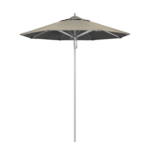 Rodeo Series Patio Umbrella, 7-1/2 ft., octagonal, single wind vent,1-1/2" dia. aluminum silver anodized pole, single piece with 3mm wall thickness, stainless steel hardware, pulley lift, oversized reinforced aluminum rib joints with stainless steel spring loaded tips, polished aluminum hub, housing and finial cap, Grade 1A Sunbrella® Fabric, spectrum dove, Made in USA