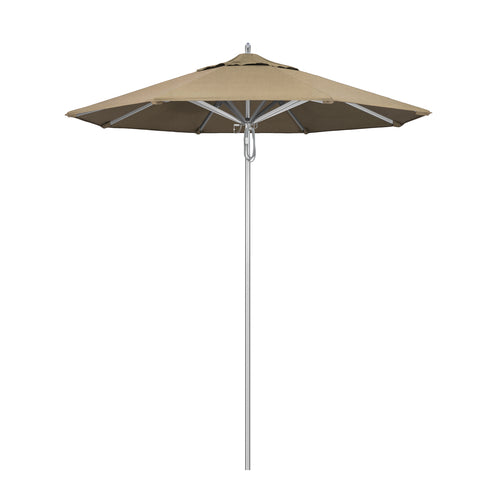 Rodeo Series Patio Umbrella, 7-1/2 ft., octagonal, single wind vent,1-1/2" dia. aluminum silver anodized pole, single piece with 3mm wall thickness, stainless steel hardware, pulley lift, oversized reinforced aluminum rib joints with stainless steel spring loaded tips, polished aluminum hub, housing and finial cap, Grade 1A Sunbrella® Fabric, heather beige, Made in USA