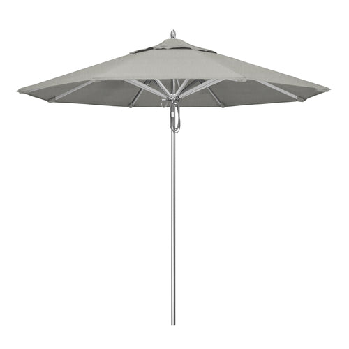 Rodeo Series Patio Umbrella, 9 ft., octagonal, single wind vent, 1-1/2" dia. aluminum silver anodized pole, single piece with 3mm wall thickness, stainless steel hardware, pulley lift, oversized reinforced aluminum rib joints with stainless steel spring loaded tips, polished aluminum hub, housing and finial cap, Grade 1A Sunbrella® Fabric, granite, Made in USA