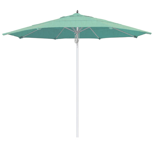 New Port Series Patio Umbrella, 11 ft., octagonal, double wind vent, 1-1/2" dia. aluminum silver anodized pole, single piece with 3mm wall thickness, pulley lift, 16mm reinforced replaceable fiberglass ribs, polished aluminum hub, housing, and finial caps Grade 1A Sunbrella™ Fabric, spectrum mist, Made in USA