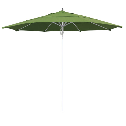 New Port Series Patio Umbrella, 11 ft., octagonal, double wind vent, 1-1/2" dia. aluminum silver anodized pole, single piece with 3mm wall thickness, pulley lift, 16mm reinforced replaceable fiberglass ribs, polished aluminum hub, housing, and finial caps Grade 1A Sunbrella™ Fabric, spectrum cilantro, Made in USA