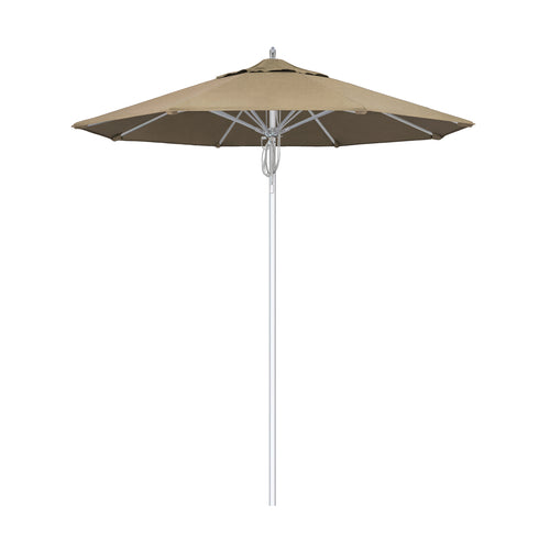 New Port Series Patio Umbrella, 7-1/2 ft., octagonal, single wind vent, 1-1/2" dia. aluminum silver anodized pole, single piece with 3mm wall thickness, pulley lift, 16mm reinforced replaceable fiberglass ribs, polished aluminum hub, housing, and finial caps Grade 1A Sunbrella™ Fabric, heather beige, Made in USA