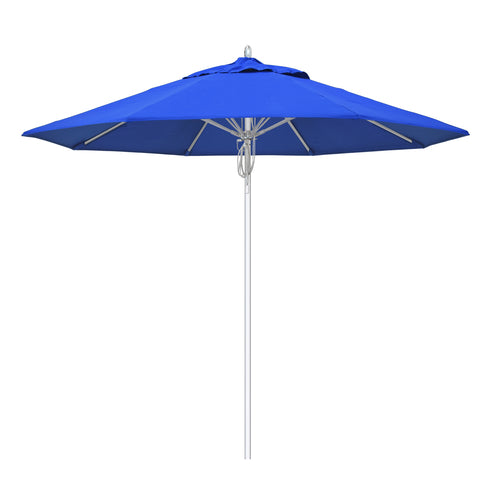 New Port Series Patio Umbrella, 9 ft., octagonal, single wind vent, 1-1/2" dia. aluminum silver anodized pole, single piece with 3mm wall thickness, pulley lift, 16mm reinforced replaceable fiberglass ribs, polished aluminum hub, housing, and finial caps Grade 1A Sunbrella™ Fabric, pacific blue, Made in USA