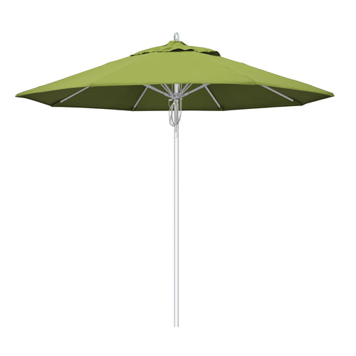 New Port Series Patio Umbrella, 9 ft., octagonal, single wind vent, 1-1/2" dia. aluminum silver anodized pole, single piece with 3mm wall thickness, pulley lift, 16mm reinforced replaceable fiberglass ribs, polished aluminum hub, housing, and finial caps Grade 2A Sunbrella™ Fabric, macaw, Made in USA