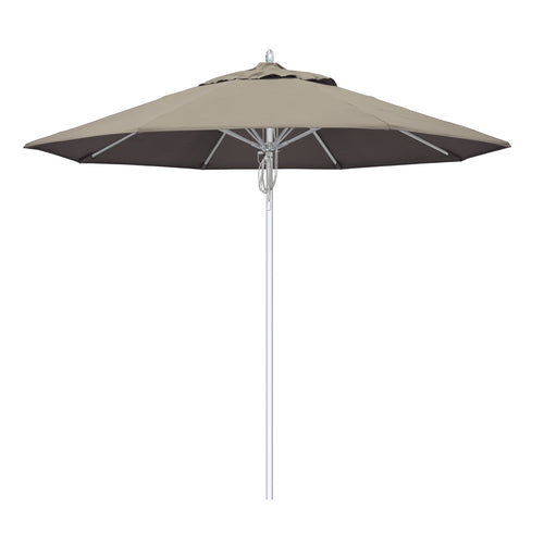 New Port Series Patio Umbrella, 9 ft., octagonal, single wind vent, 1-1/2" dia. aluminum silver anodized pole, single piece with 3mm wall thickness, pulley lift, 16mm reinforced replaceable fiberglass ribs, polished aluminum hub, housing, and finial caps Grade 1A Sunbrella™ Fabric, taupe, Made in USA