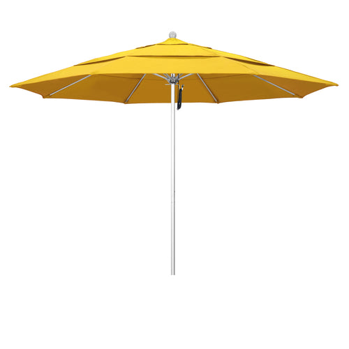 Venture Series Patio Umbrella, 11 ft., octagonal, double wind vent, 1-1/2" dia. silver anodized aluminum pole, 2-piece with 2mm wall thickness, 12.7mm reinforced fiberglass ribs, push lift with pin stop, stainless steel hardware, zinc plated hub & housing, Olefin Fabric, lemon