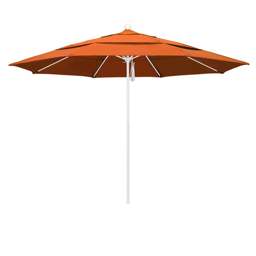 Venture Series Patio Umbrella, 11 ft., octagonal, double wind vent, 1-1/2" dia. textured matted white aluminum pole, 2-piece with 2mm wall thickness, 12.7mm reinforced fiberglass ribs, push lift with pin stop, stainless steel hardware, zinc plated hub & housing, Grade 2A Sunbrella® Fabric, tuscan, Made in USA