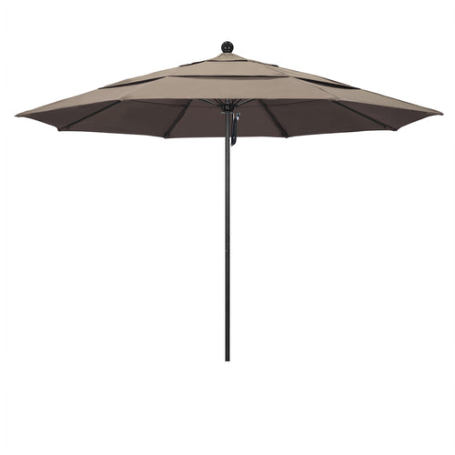 Venture Series Patio Umbrella, 11 ft., octagonal, double wind vent, 1-1/2" dia. stone black aluminum pole, 2-piece with 2mm wall thickness, 12.7mm reinforced fiberglass ribs, push lift with pin stop, stainless steel hardware, zinc plated hub & housing, Grade 1A Sunbrella™ Fabric, taupe, Made in USA