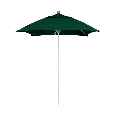 Venture Series Patio Umbrella, 6' x 6', square, single wind vent, 1-1/2" dia. aluminum silver anodized pole, 2-piece pole with 2mm wall thickness, 12.7mm reinforced fiberglass ribs, push lift with pin stop, stainless steel hardware, zinc plated hub & housing, Grade 1A Sunbrella® Fabric, forest green, Made in USA