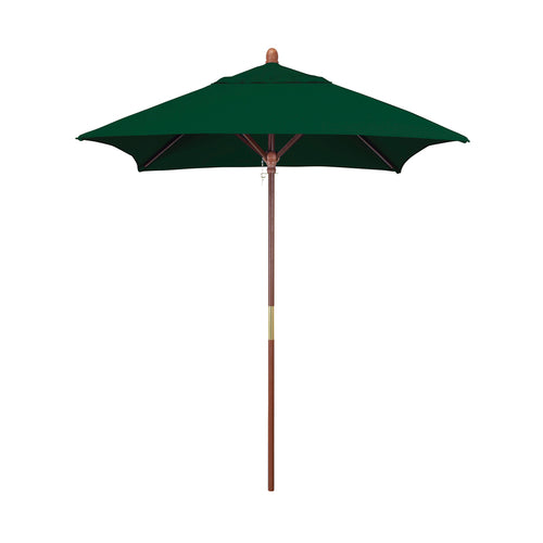 Grove Series Patio Umbrella, 6' x 6', square, single wind vent, 1-1/2" dia. 2-piece hardwood pole, push lift with pin stop, reinforced rib joints, stainless steel hardware, resin hub and housing, Grade 1A Sunbrella® Fabric, forest green, Made in USA