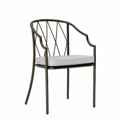 Como Stacking Arm Chair, indoor/outdoor, steel wire diamond pattern back, steel seat, tubular frame, e-coated steel, powder coated, PVC foot caps