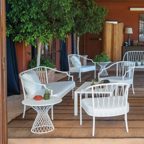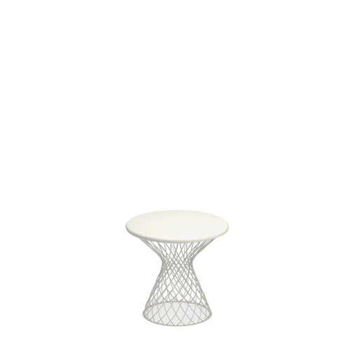 Como Side Table, indoor/outdoor, round, steel wire diamond pattern base, solid steel top, tubular frame, e-coated steel, powder coated, PVC foot caps