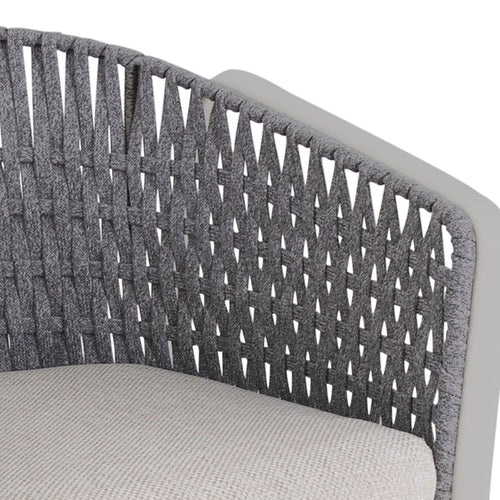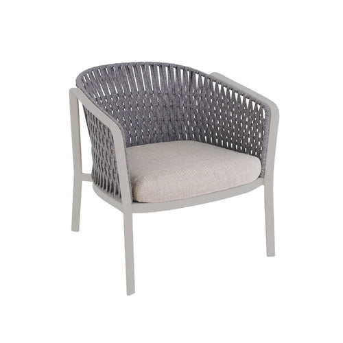 Carousel Lounge Armchair, indoor/outdoor, with flat rope back, aluminum tubular frame, PVC foot caps