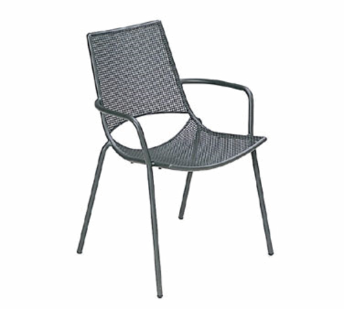 Topper Stacking Armchair, outdoor/indoor, interlace steel mesh back and seat, tubular frame, e-coated steel, powder coated, PVC foot caps