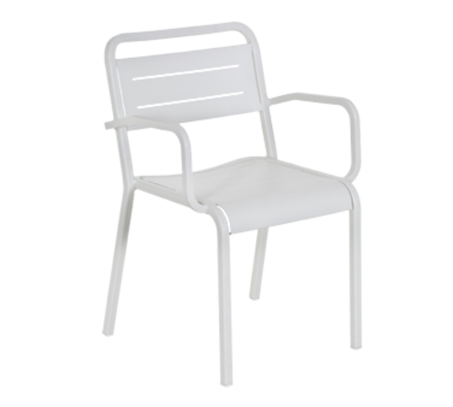 Urban Stacking Armchair, outdoor/indoor, slat back and seat, square tube legs, aluminum with e-coated powder finish