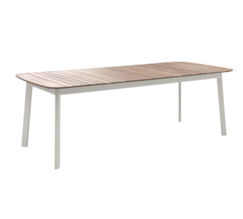 Shine Teak Table, rectangular, 88" x 40" x 29-1/2"H, outdoor/indoor, natural teak wood slat top, aluminum legs, powder coated, PVC foot caps, Advanced Collection, design by Arik Levy