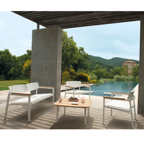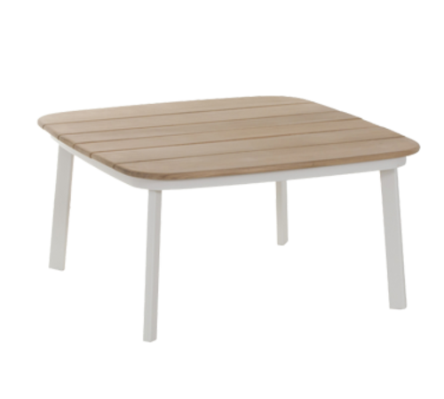 Shine Teak Low Table, square, 31" x 31" x 16"H, outdoor/indoor, natural teak wood slat top, square tube aluminum frame, PVC foot caps, Advanced Collection, design by Arik Levy