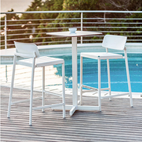 Shine Bar Table, square, 24" x 24" x 41-1/2"H, outdoor/indoor, HPL top, 4-cross base, tubular aluminum column, powder coated, PVC foot caps (ships in two boxes)