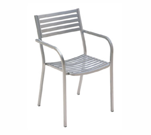 Segno Stacking Armchair, outdoor/indoor, steel slat pattern back and seat, square tubular frame, e-coated steel, powder coated, PVC foot caps (Best Seller)