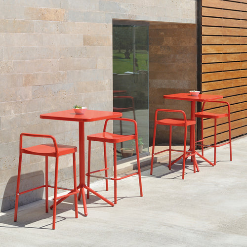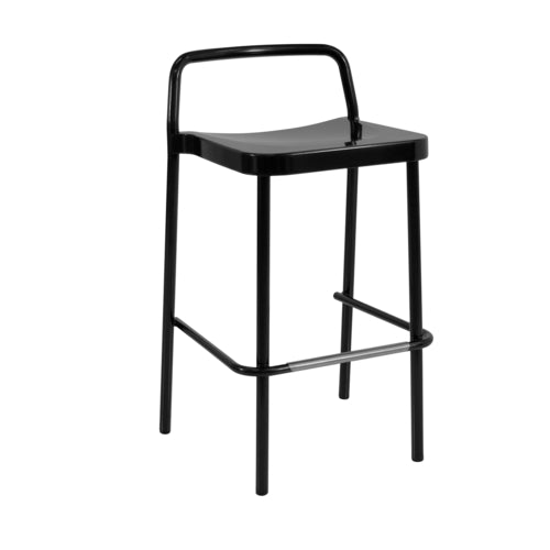 Grace Stacking Barstool, outdoor/indoor, armless, solid seat, tubular back and frame, aluminum with powder coat finish, foot rest, PVC foot caps, Advanced Collection, design by Samuel Wilkinson