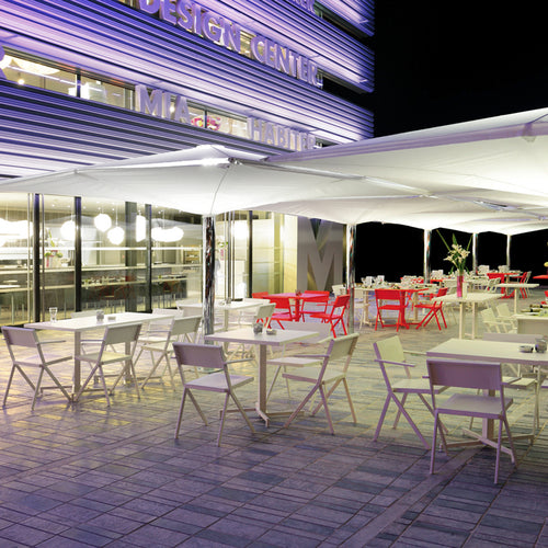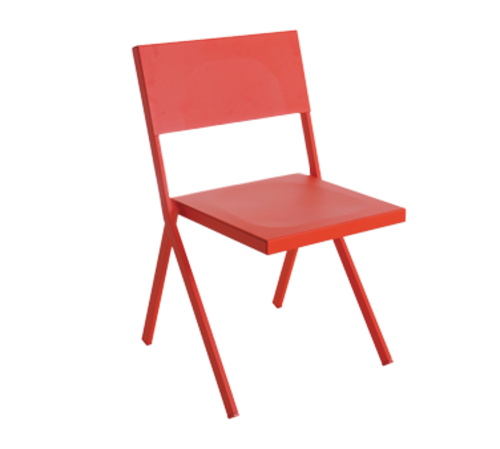 Mia Stacking Side Chair, outdoor/indoor, aluminum seat and back, square tube legs, steel frame, e-coated powder coat finish, PVC foot caps, Advanced Collection, design by Jean Nouvel
