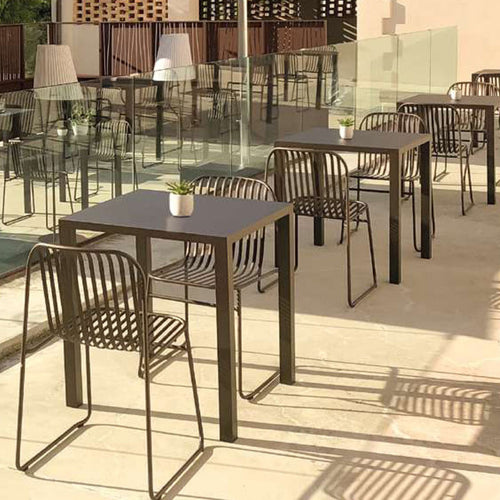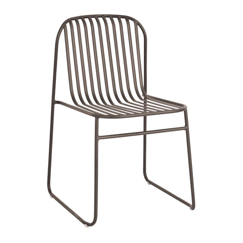 Riviera Stacking Side Chair, outdoor/indoor, slatted wrought iron back and seat, tubular steel frame, e-coated powder coat finish, designed by Lucidi/Pevere