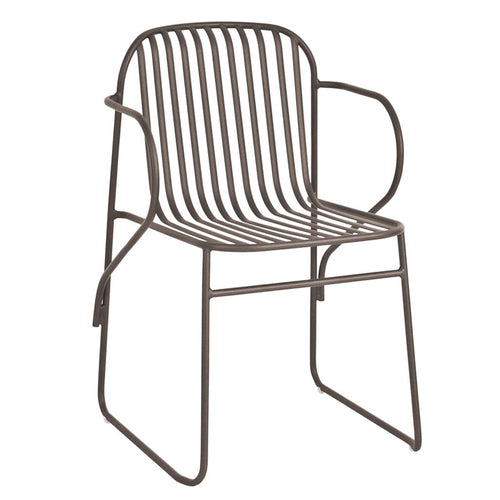 Riviera Stacking Armchair, outdoor/indoor, slatted wrought iron back and seat, steel frame, e-coated powder coat finish, designed by Lucidi/Pevere