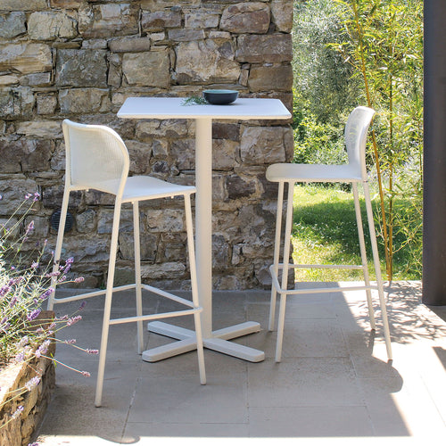 Darwin Stacking Barstool, outdoor/indoor, armless, steel mesh seat and back, tubular steel frame, e-coated powder coat finish, foot rest, PVC foot caps, designed by Lucidi/Pevere (Best Seller)