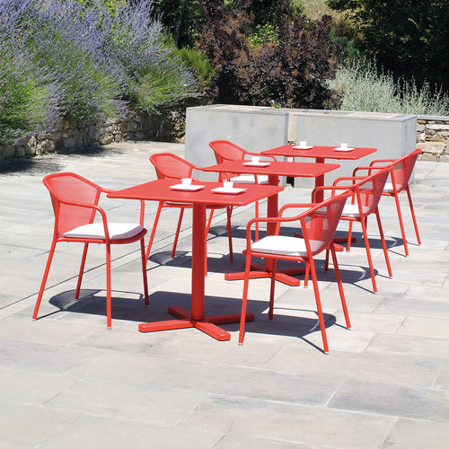 Darwin Tilt Top Table, outdoor/indoor, 28" x 28" x 29"H, square, dining height, 3/4" thick, solid steel top and base, e-coated powder coat finish, PVC foot caps, designed by Lucidi/Pevere (Best Seller)