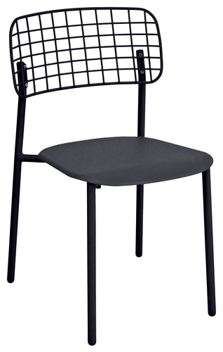 Lyze Stacking Side Chair, outdoor/indoor, stainless steel back, aluminum seat, tubular aluminum frame, e-coated powder coat finish, PVC foot caps, Advanced Collection, designed by Florent Coirier