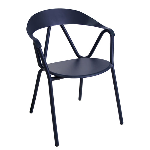 Reef Stacking Armchair, outdoor/indoor, solid aluminum seat and back, tubular frame, aluminum with powder coat finish, PVC foot caps (contact factory for price)