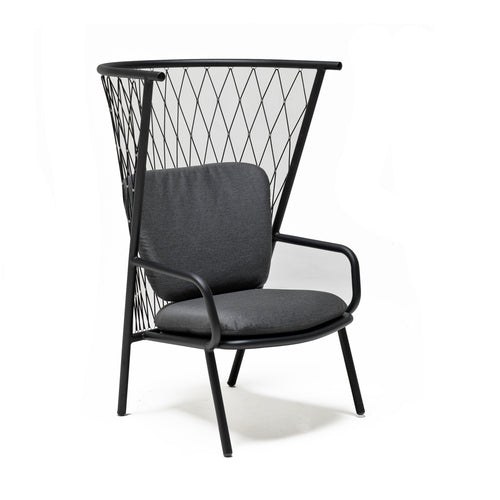 Nef Lounge Chair, outdoor/indoor, synthetic rope back, solid aluminum seat, aluminum frame, Advanced Collection, Patrick Norguet