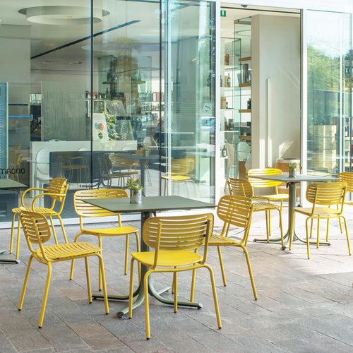 Mom Stacking Side Chair, outdoor/indoor, solid steel cut-out style back and seat, tubular steel frame, e-coated powder coat finish, designed by Florent Coirier