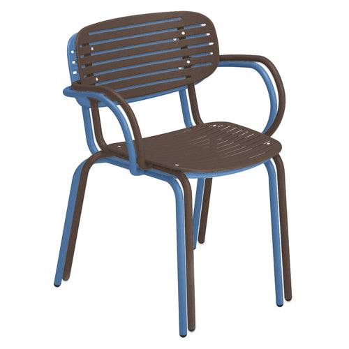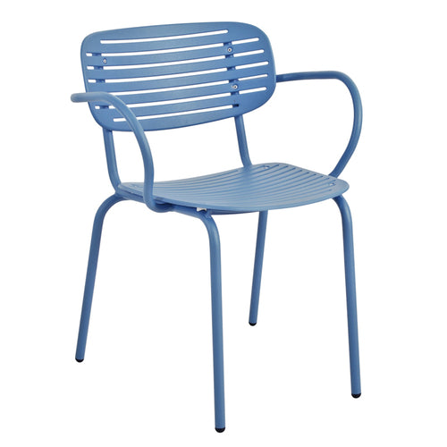 Mom Stacking Armchair, outdoor/indoor, solid steel cut-out style back and seat, tubular steel frame, e-coated powder coat finish, designed by Florent Coirier