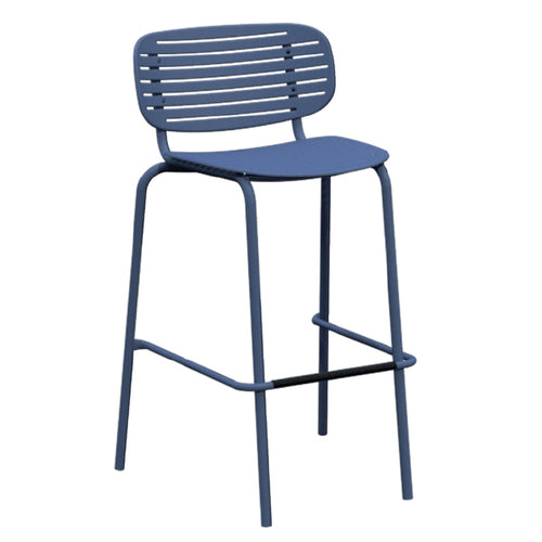 Mom Stacking Barstool, outdoor/indoor, solid steel cut-out style back and seat, tubular steel frame, e-coated powder coat finish, designed by Florent Coirier