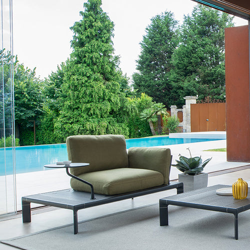 Tami Lounge Chair, outdoor/indoor, slatted wood plastic composite, with aluminum base frame, assembly required, Advanced Collection, designed by Patrick Norguet