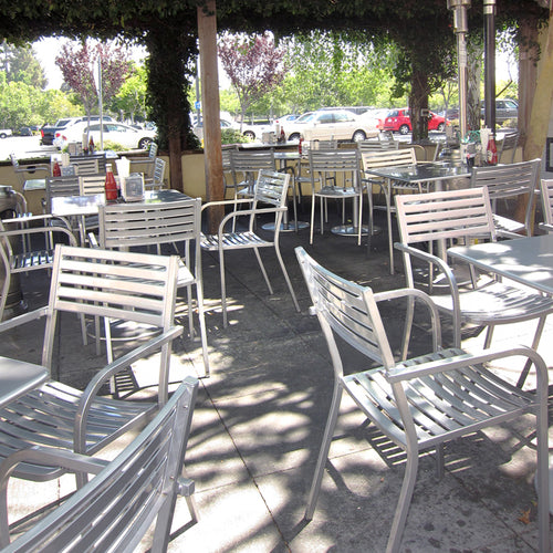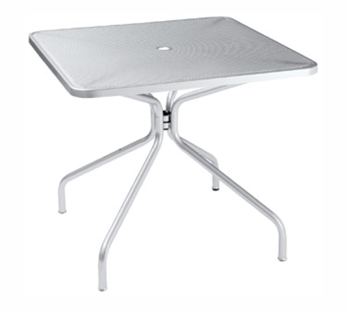 Cambi Table, with umbrella hole, square, 32" x 32" x 29-1/2"H, outdoor/indoor, mesh top, tubular steel legs, e-coated steel, powder coated, PVC foot caps (one adjustable) (Best Seller)