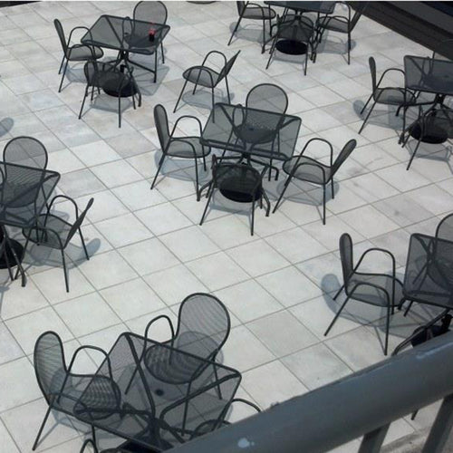 Cambi Table, with umbrella hole, square, 36" x 36" x 29-1/2"H, outdoor/indoor, mesh top, tubular steel legs, e-coated steel, powder coated, PVC foot caps (one adjustable) (Best Seller)