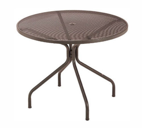 Cambi Table, with umbrella hole, round, 42" dia. x 29-1/2"H, outdoor/indoor, mesh top, tubular steel legs, e-coated steel, powder coated, PVC foot caps (one adjustable) (Best Seller)