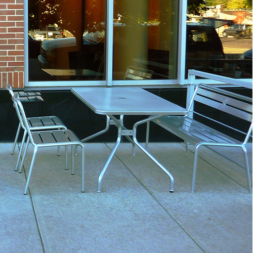 Drink Table, with umbrella hole, rectangular, 48" x 32" x 29-1/2"H, outdoor/indoor, mesh top, tubular steel legs, e-coated steel, powder coated, PVC foot caps (one adjustable)