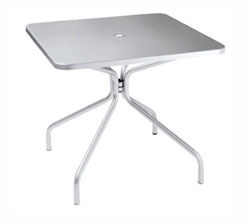 Solid Table, with umbrella hole, square, 36" x 36" x 29-1/2"H, outdoor/indoor, solid steel top, tubular steel legs, e-coated powder coat finish, PVC foot caps (one adjustable), made in Italy