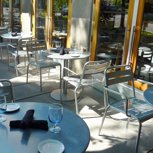 Bistro Table, round, 24" dia. x 30"H, outdoor/indoor, solid steel pedestal and top, tubular steel column, e-coated steel, powder coated, PVC foot caps (Best Seller)