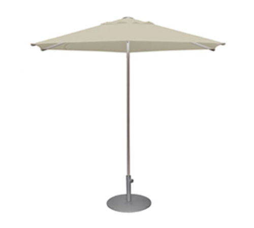Shade Umbrella, 8-1/2 ft., hexagon top, 1-1/2" dia. center hole, anodized aluminum pole, ribs, struts, hubs, and finial, manual lift, self locking, with vent, pocket less canopy attachment, all repairable construction
