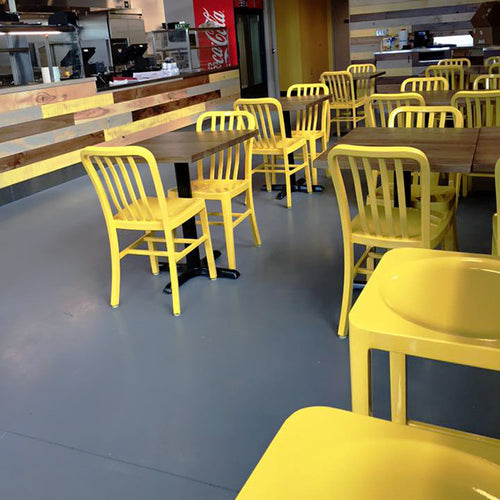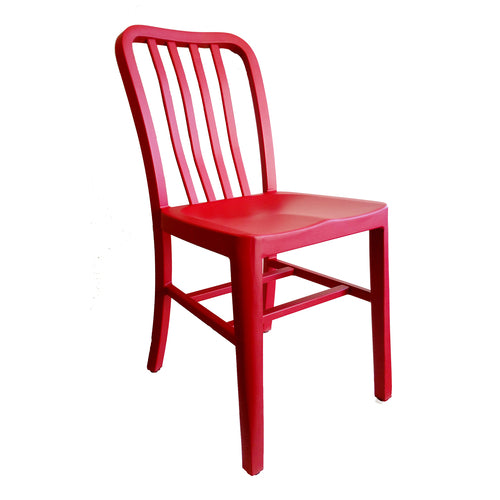 Anna Side Chair, outdoor/indoor, slat back, saddle seat, aluminum, PVC foot caps (Custom RAL color)
