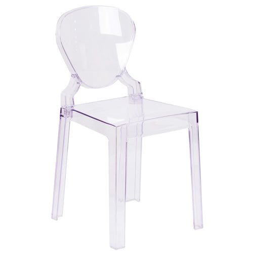 Ghost Chair, 330 lb. weight capacity, tear back, contoured seat, molded polycarbonate, plastic floor glides, designed for commercial use/suitable for outdoor use, transparent crystal (assembly required) (in stock items usually ship within 24 hours)
