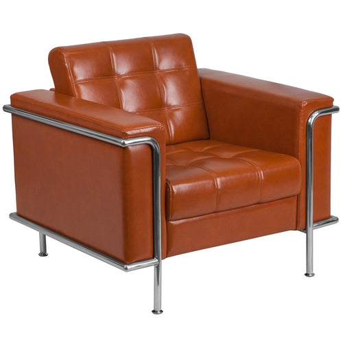 Hercules Lesley Series Chair, LeatherSoft upholstery, tufted seat and back, fixed seat and back cushions, CA117 fire retardant foam, exposed stainless steel accent bar, integrated stainless steel legs, cognac (assembly required) (in stock items usually ship within 24 hours)